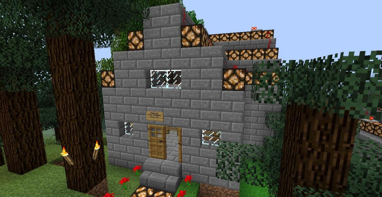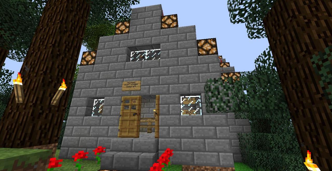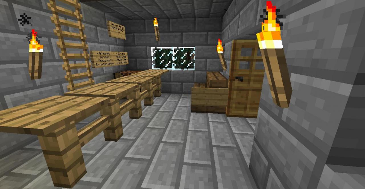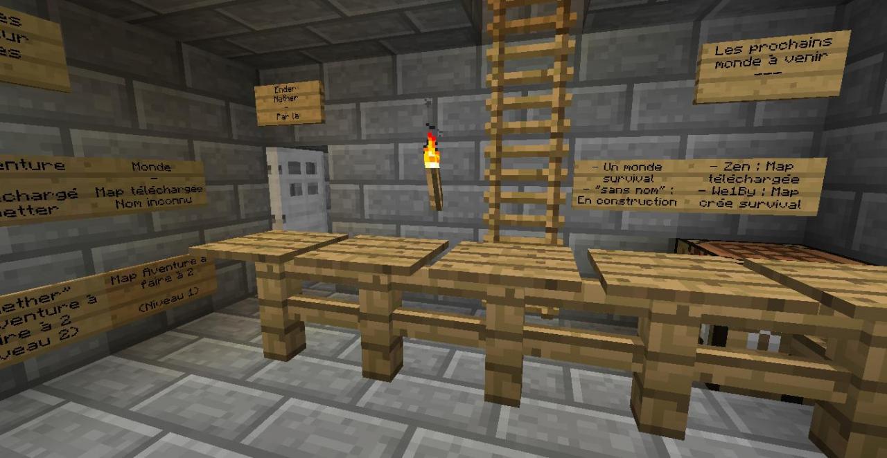 La Salle des mondes est un tout petit bâtiment en brique de pierre, a proximité du spawn.